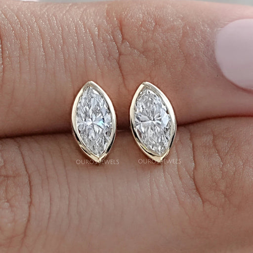 Marquise Lab Diamond Bezel Set Stud Earrings