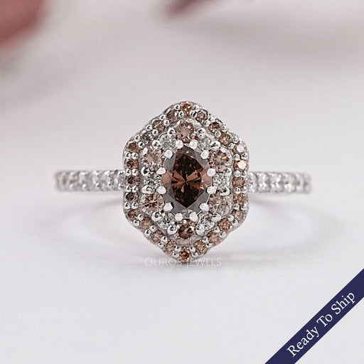 Fancy Brown Oval Cut Lab Diamond Double Halo Ring