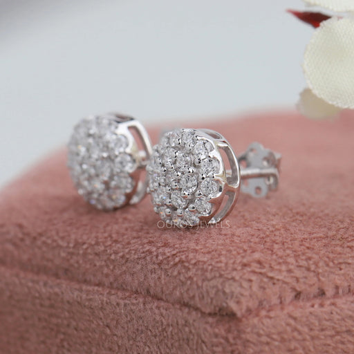 View full detailsPave Set Round Diamond Halo Stud Earrings