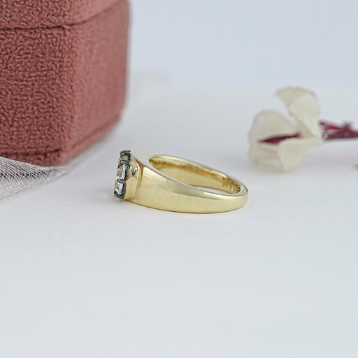 East West Rose Cut Oval Lab Diamond Bezel Solitaire Ring
