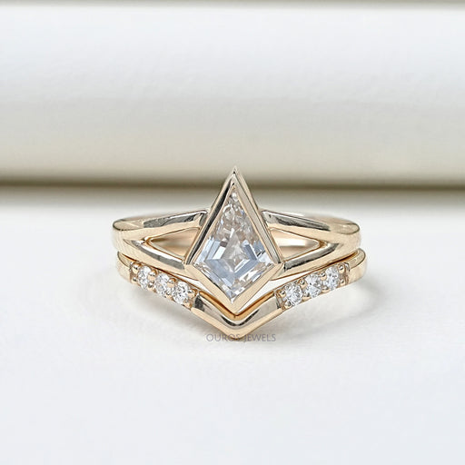 Kite Cut Lab Diamond Bezel Set Bridal Ring Set