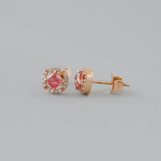 View full detailsPink Cushion Cut Halo Stud Earrings