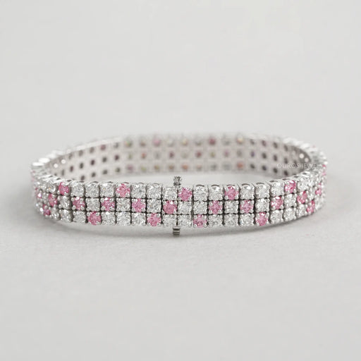 View full detailsFancy Pink Round Cut Three Row Lab Diamond Bracelet