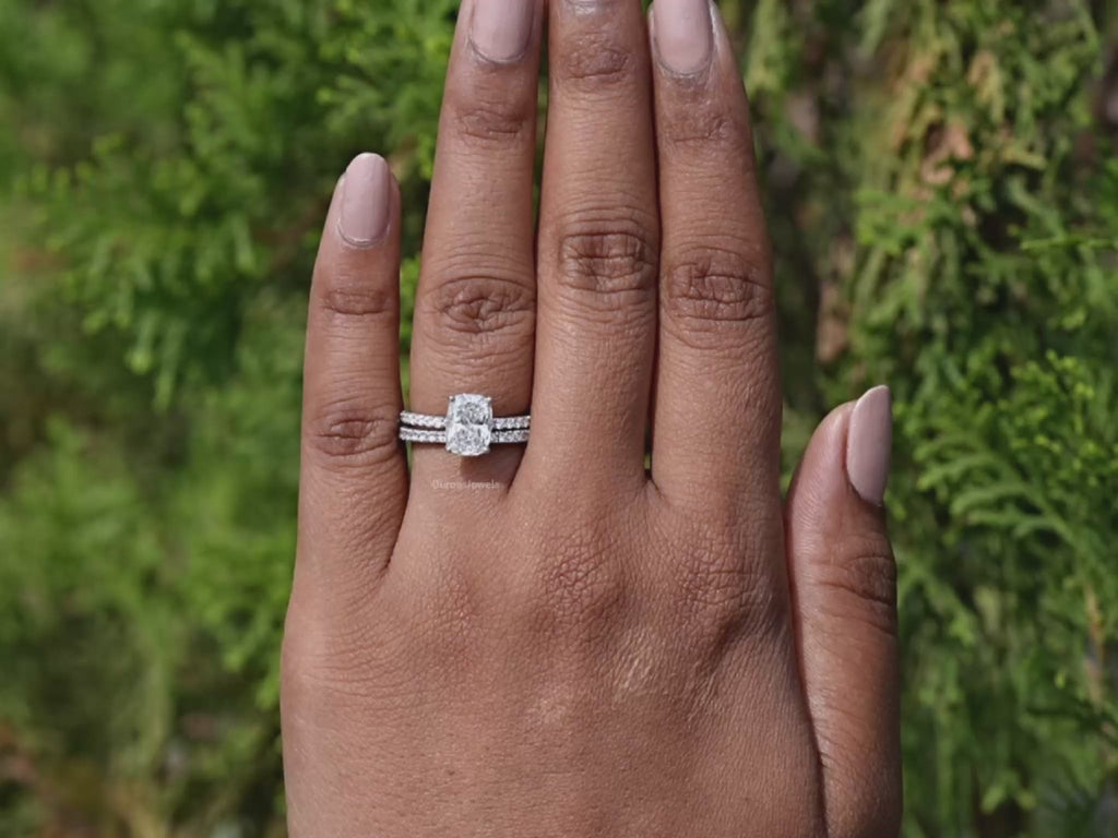 Elongated Cushion Cut Diamond Bridal Wedding Ring Set
