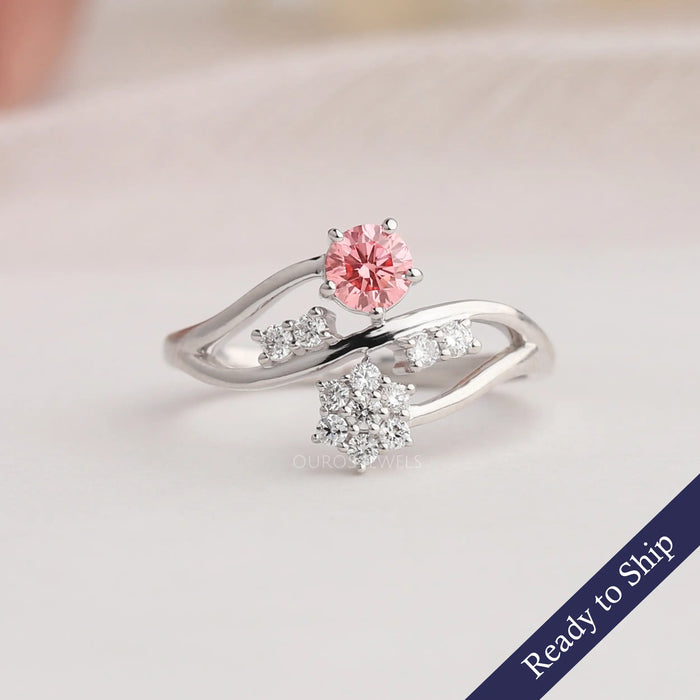 Pink Round Cut Lab Diamond Bypass Set Dainty Ring