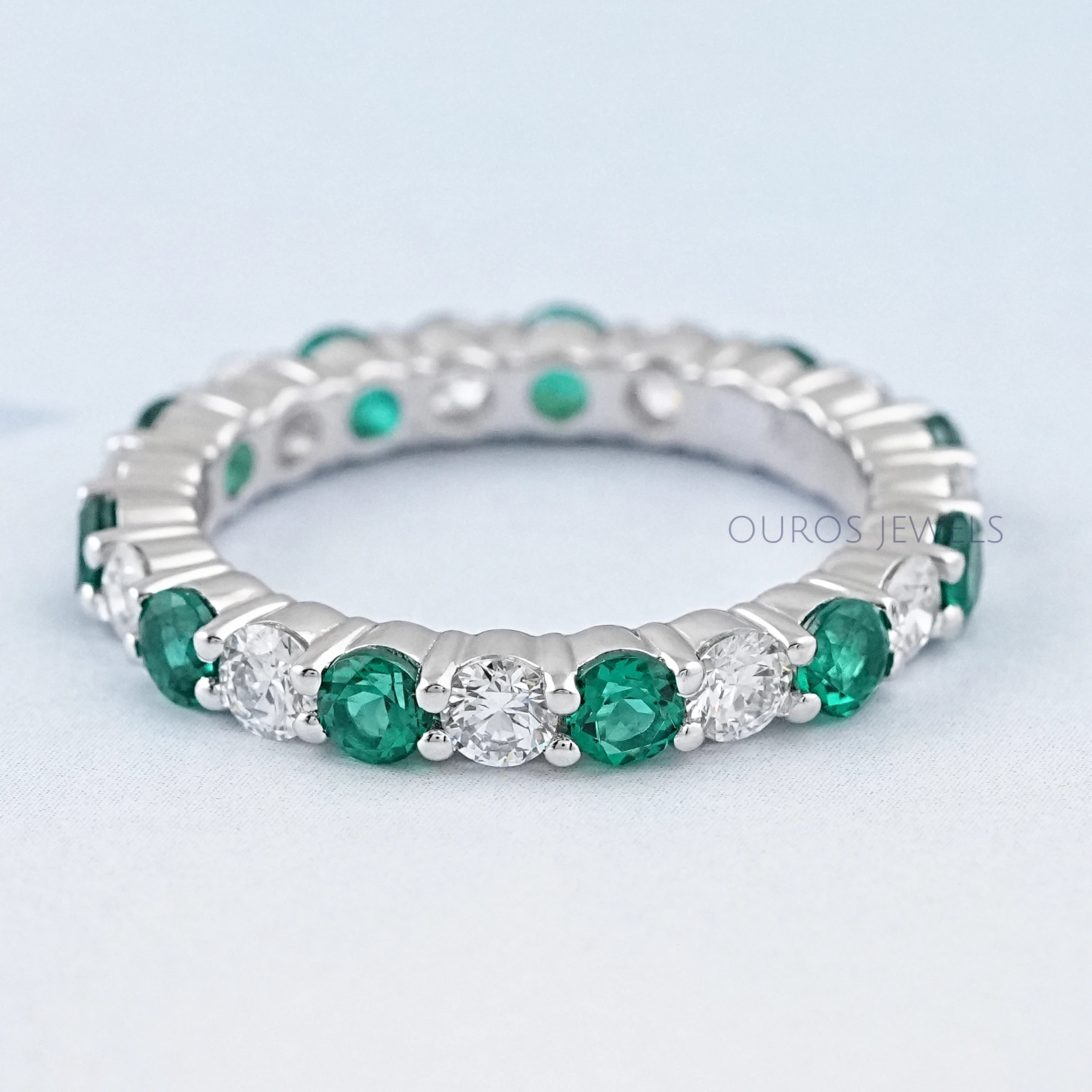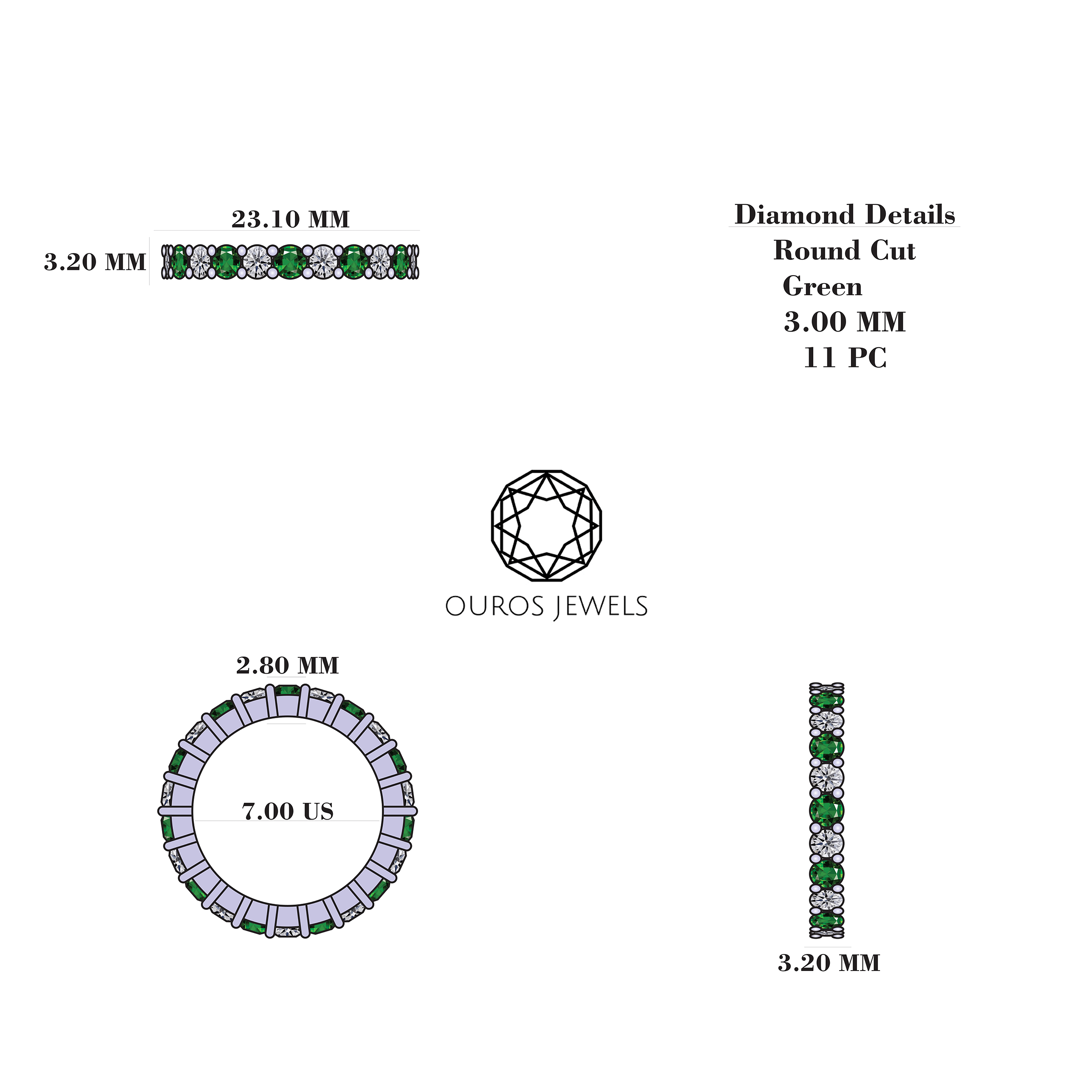 Green Round And Diamond Three Stone Accent Diamond Ring