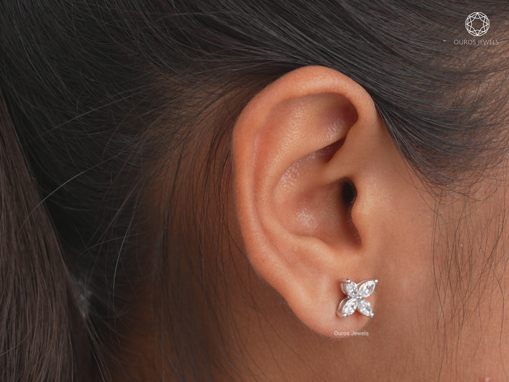 Marquise Cut Flower Shaped Diamond Stud Earrings