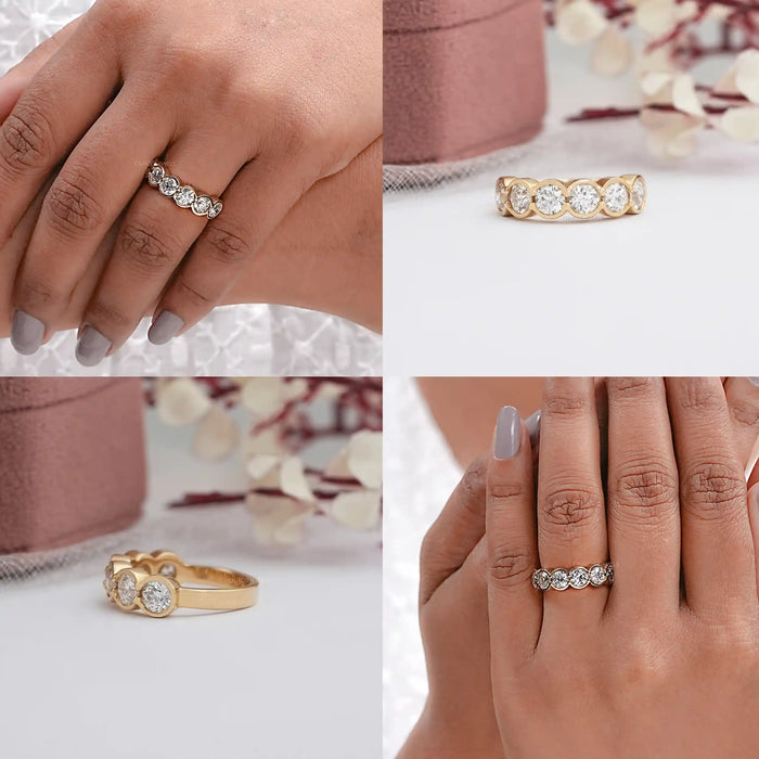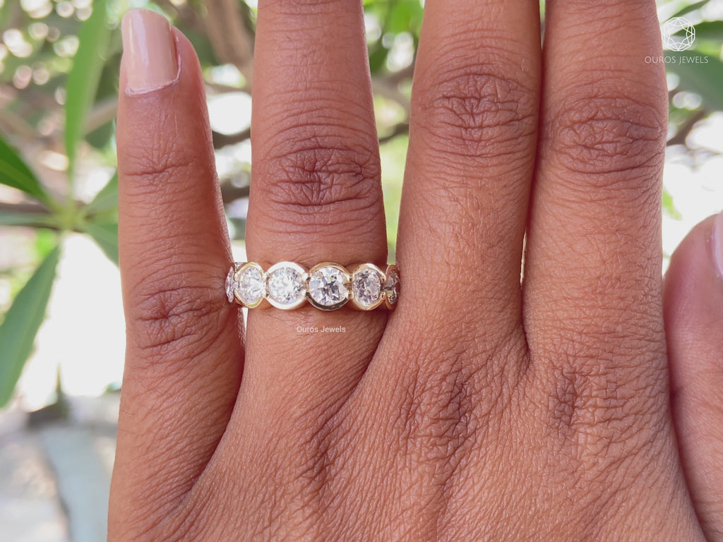 OEC Round Cut Lab Diamond Half Eternity & Half Bezel Set Band