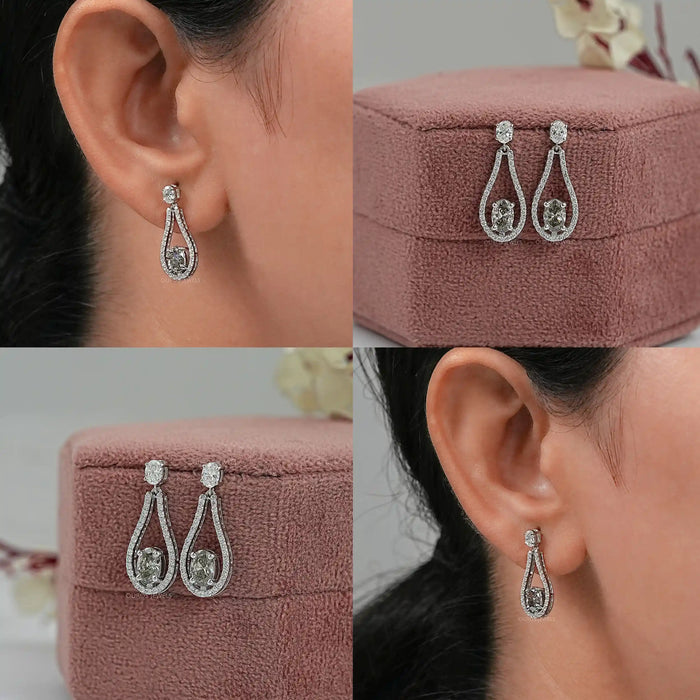 Olive Oval Diamond Layered Teardrop Dangle Earrings