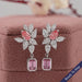 Pink Emerald And Pear Diamond Cluster Drop Earrings