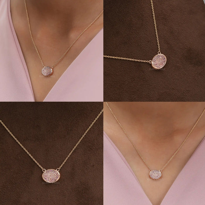 Pink Round Cut Lab Grown Diamond Pave Set Pendant