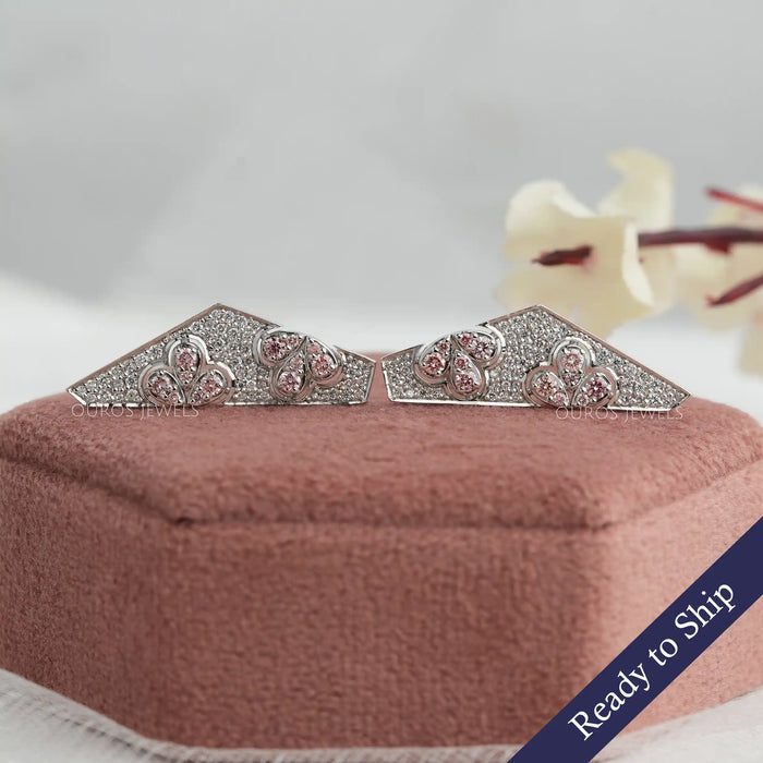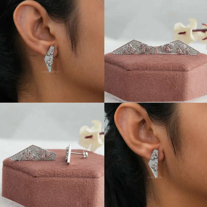 Pink Round Cut Lab Grown Diamond Screw Back Earrings