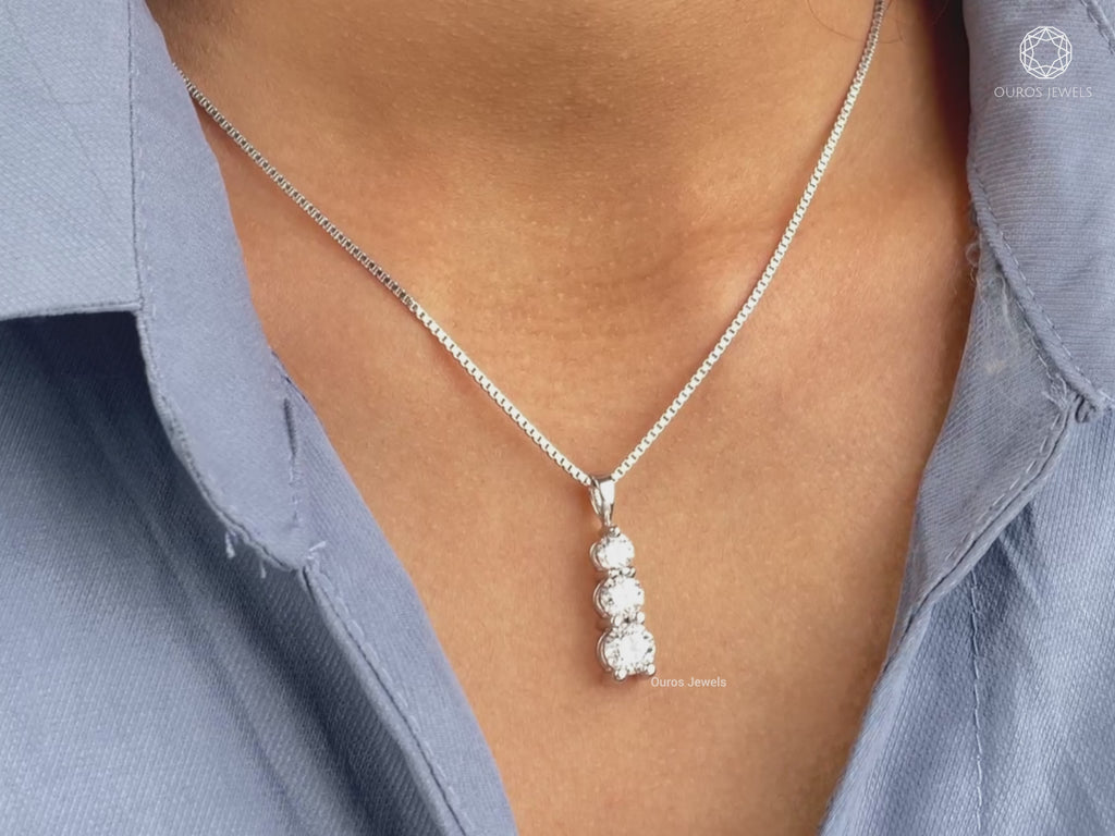 3 Stone Round Cut Lab Diamond Bar Pendant