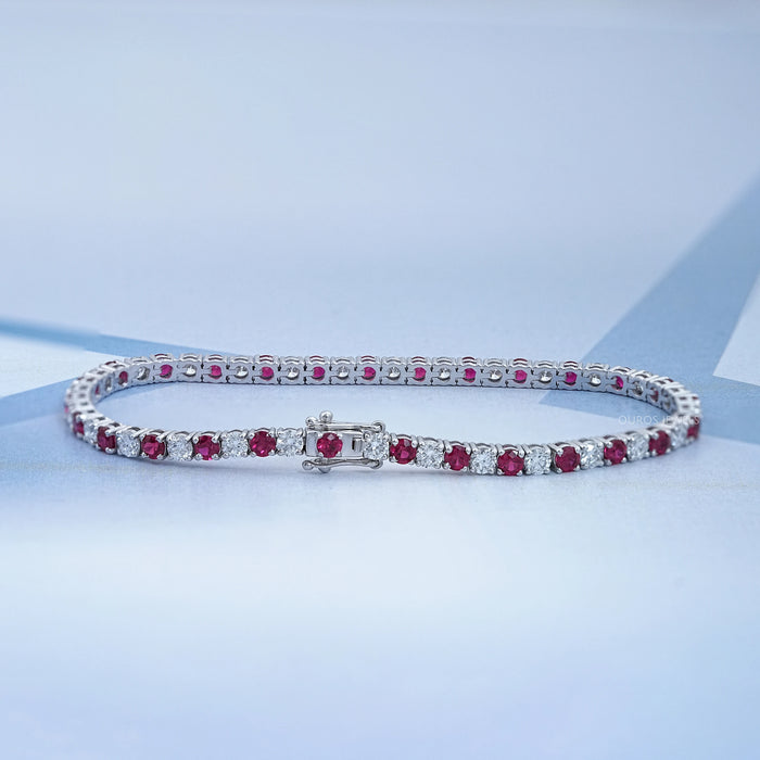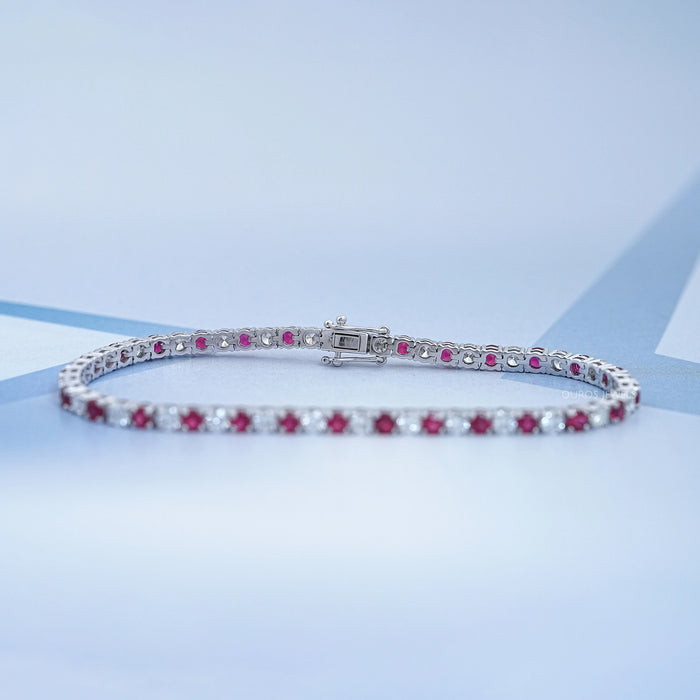 Ruby Round Gemstone And Lab Diamond Tennis Bracelet