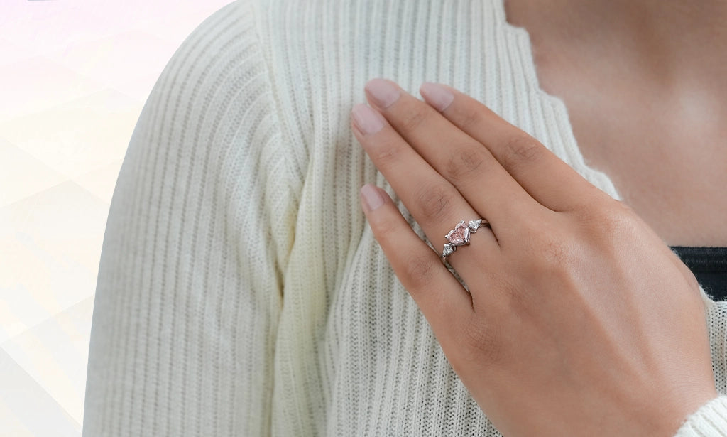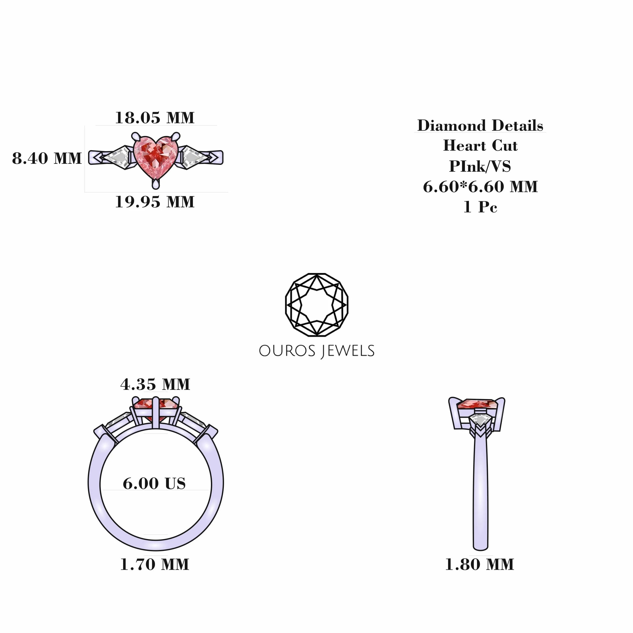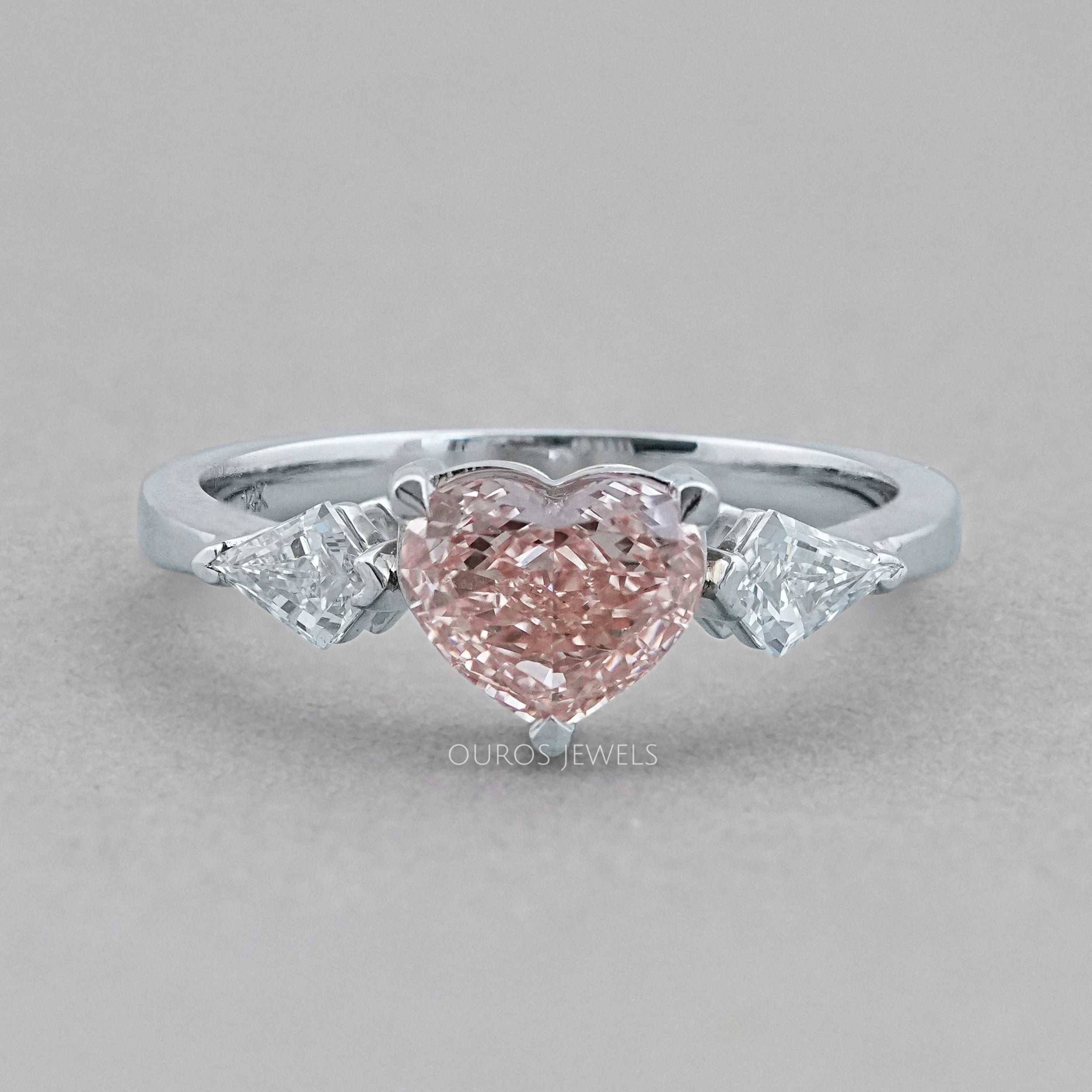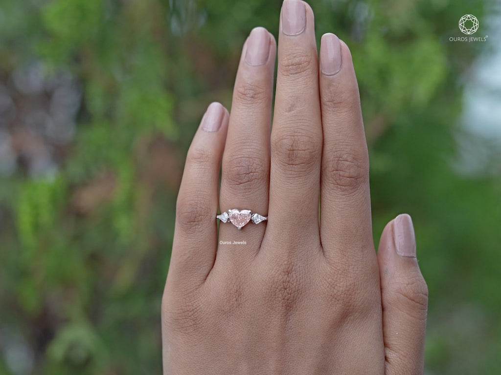 3 Stone Pink Heart Cut Diamond Engagement Ring