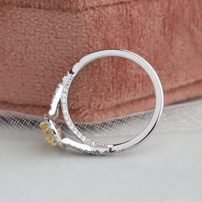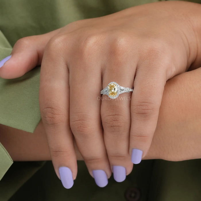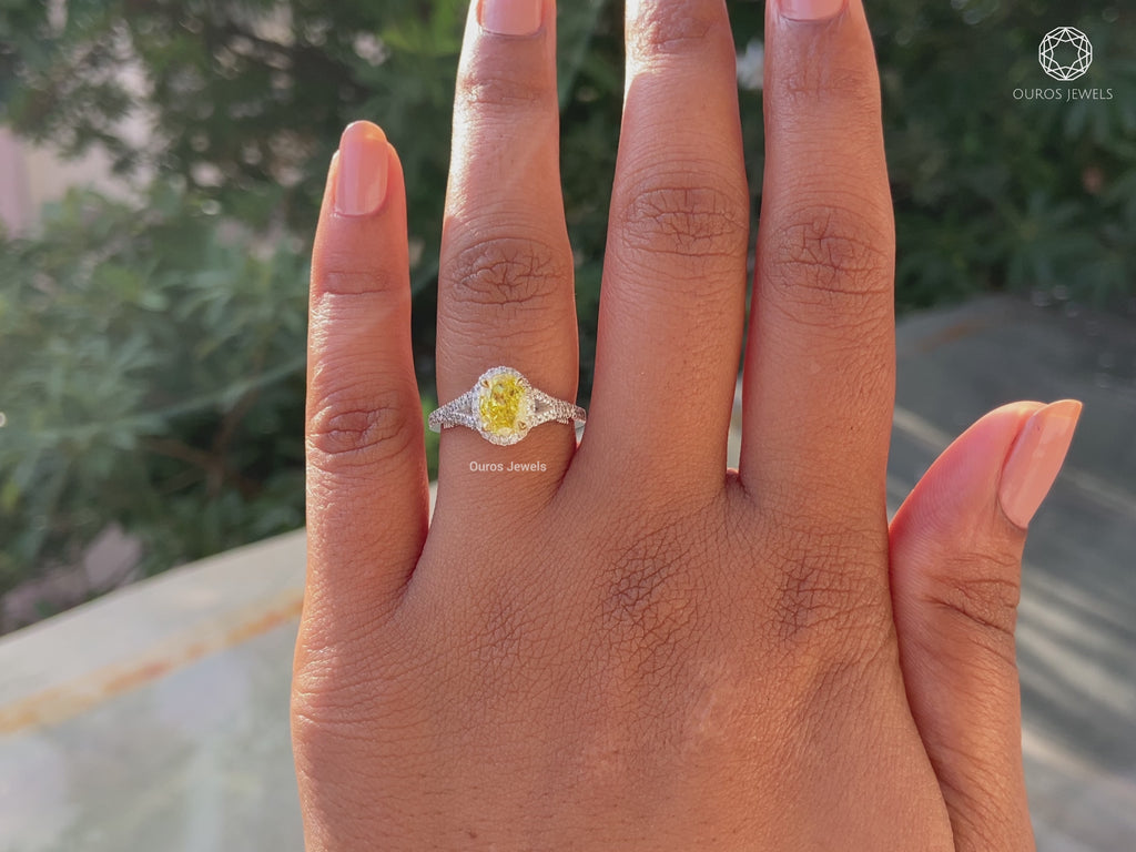 Yellow Oval Diamond Halo Split Shank Engagement Ring